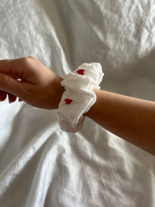Chouchou Scrunchie en gaze cœur rouge