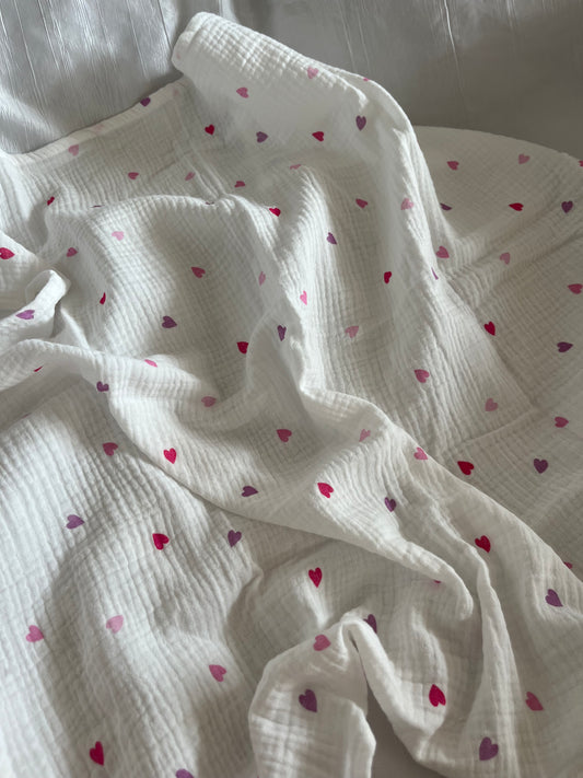 Chouchou Scrunchie en gaze cœur rose lilas