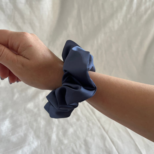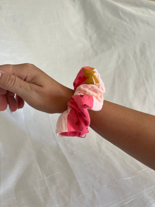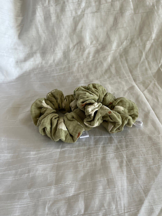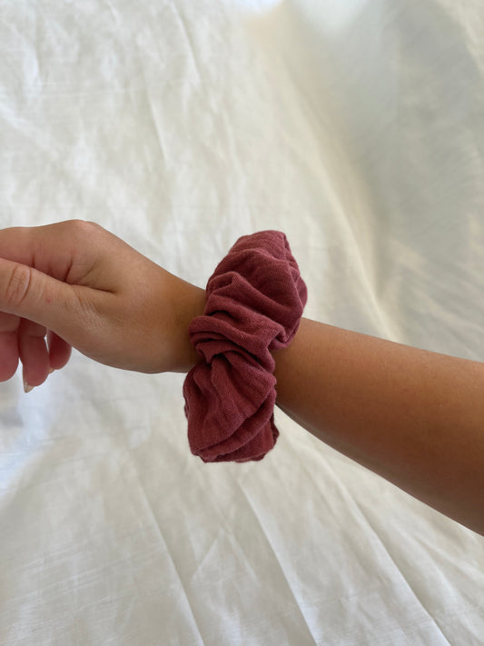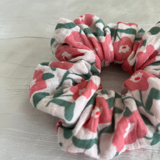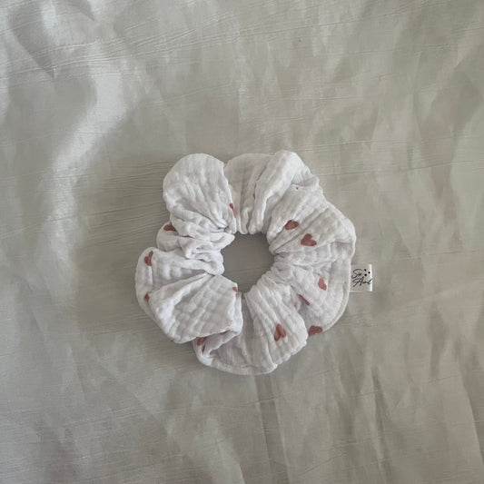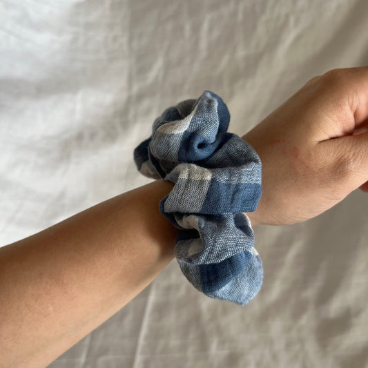 Chouchou Scrunchie en gaze de coton Vichy bleu