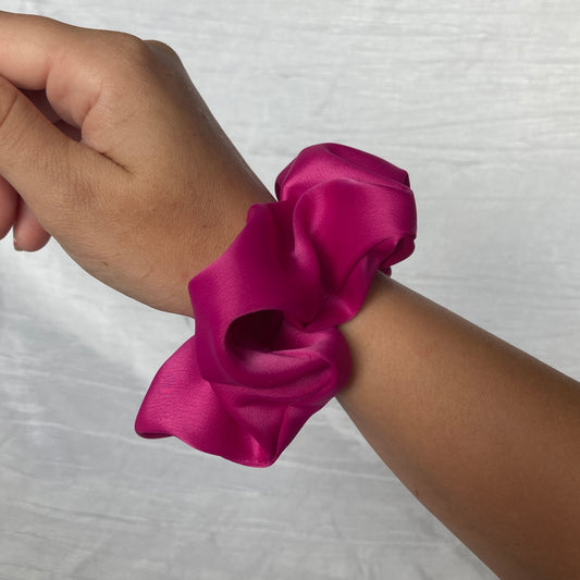 Chouchou Scrunchie en satin Rose fushia