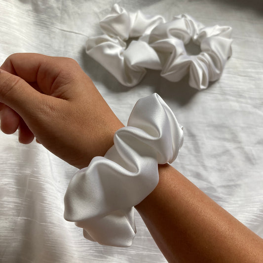 Chouchou Scrunchie en satin blanc