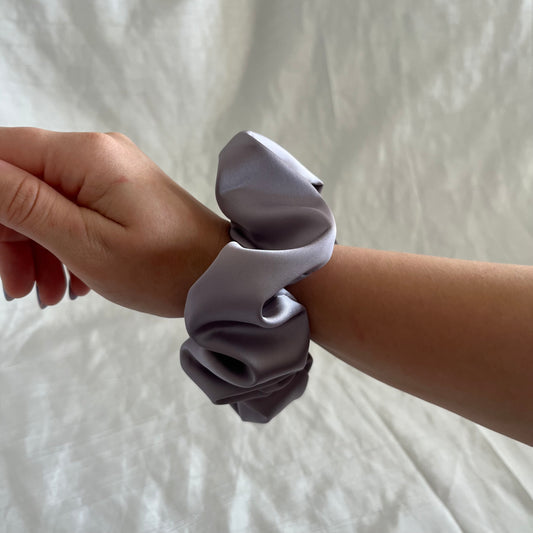 Chouchou Scrunchie en satin gris Songe