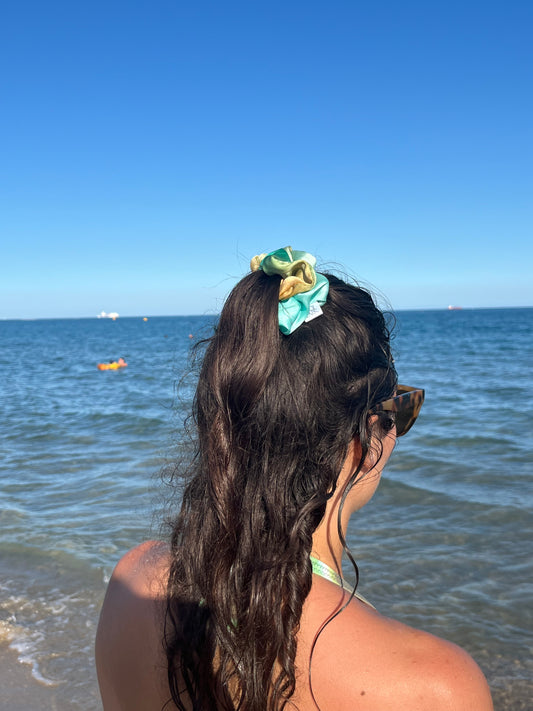 Chouchou Scrunchie en satin Océan
