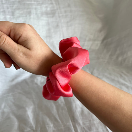 Chouchou Scrunchie en satin Sorbet rose