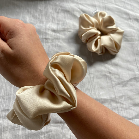 Chouchou Scrunchie en satin Sable écru
