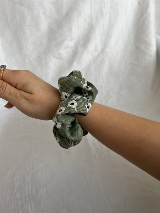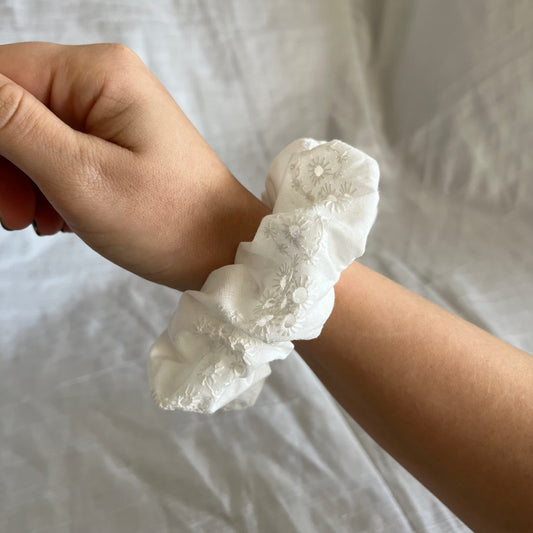 Chouchou Scrunchie en coton Broderie Anglaise