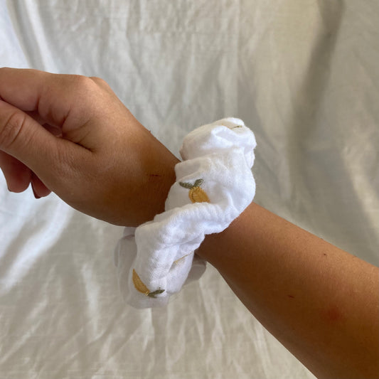 Chouchou Scrunchie en gaze de coton Citron brodé