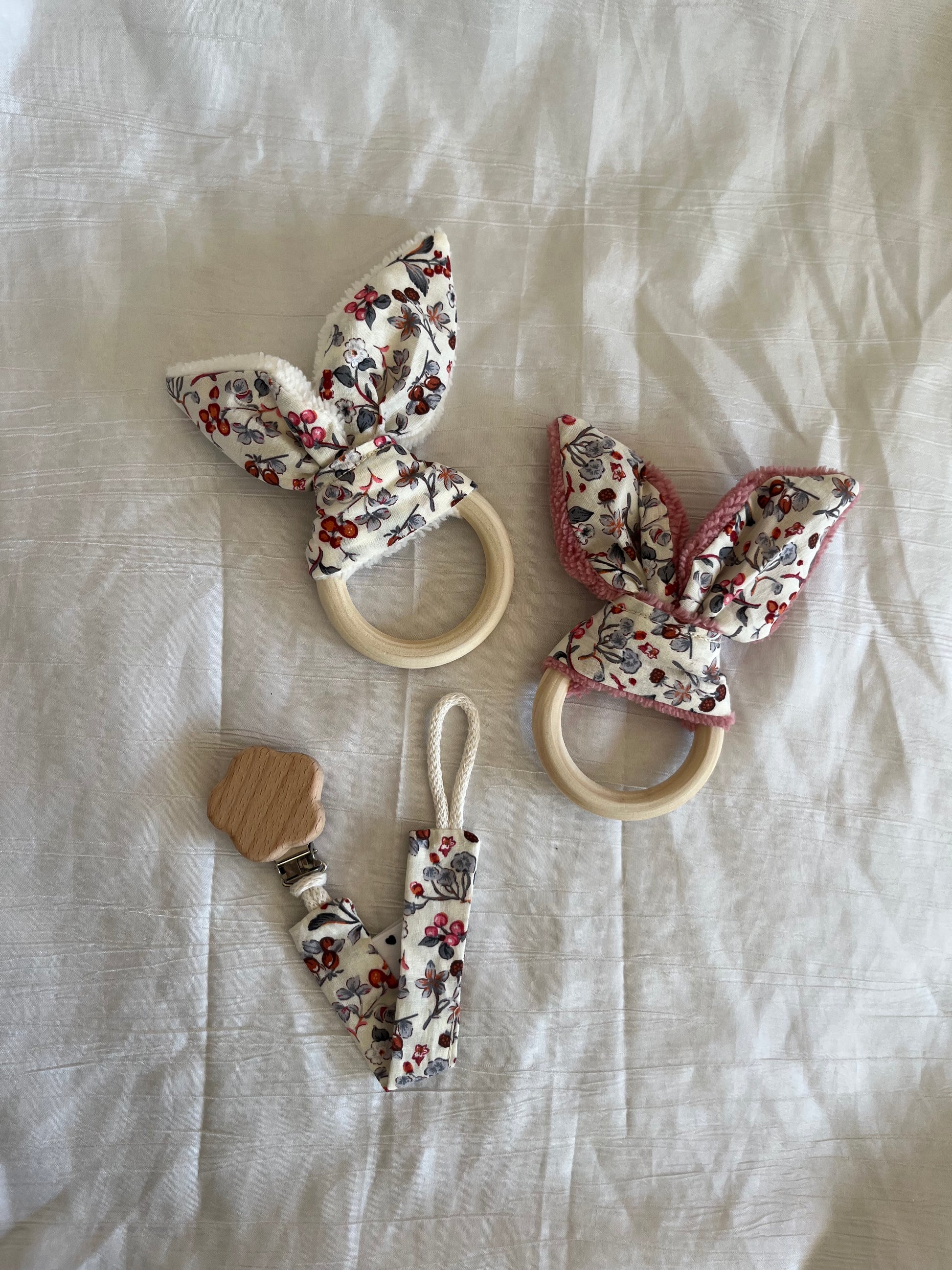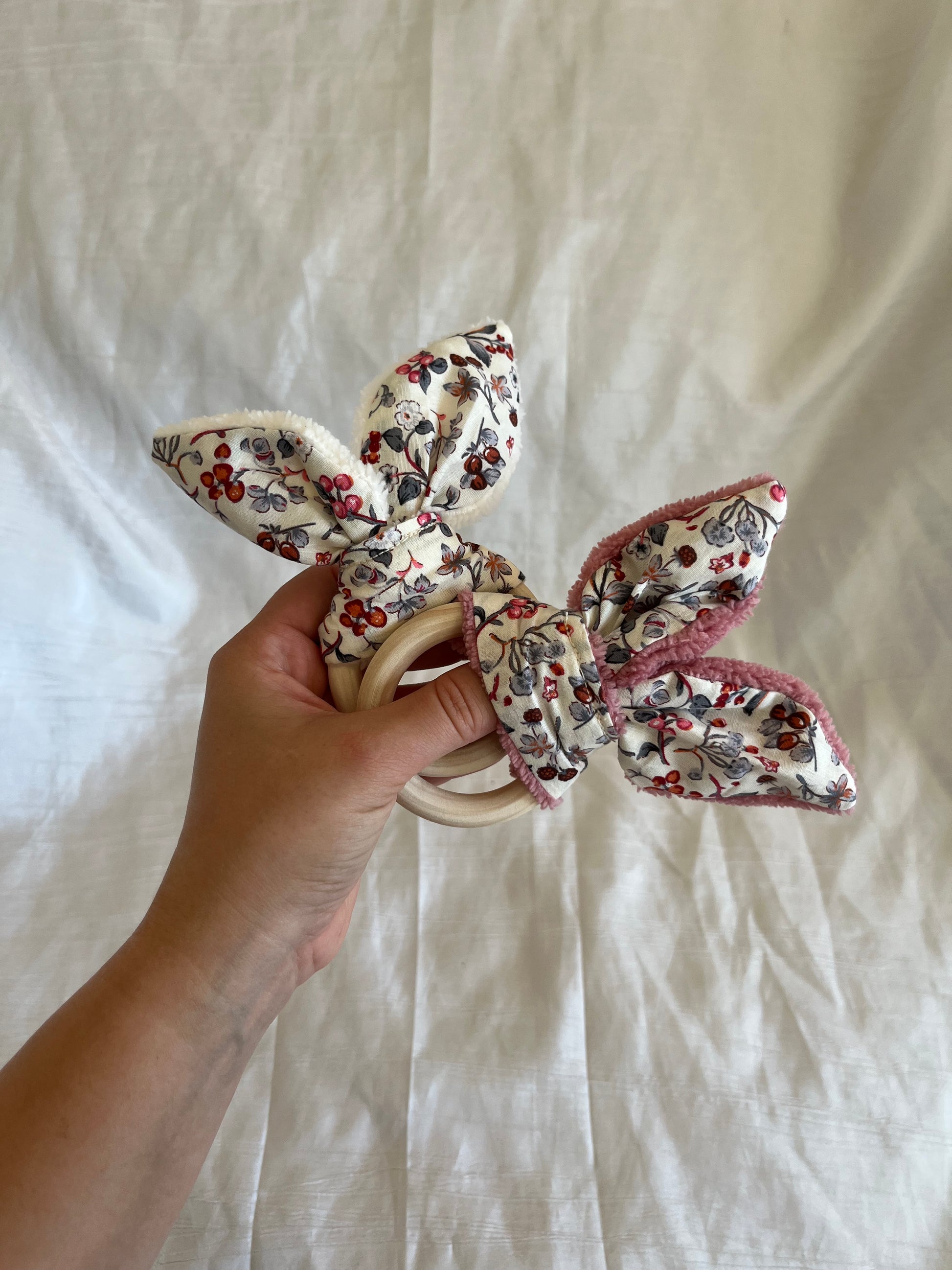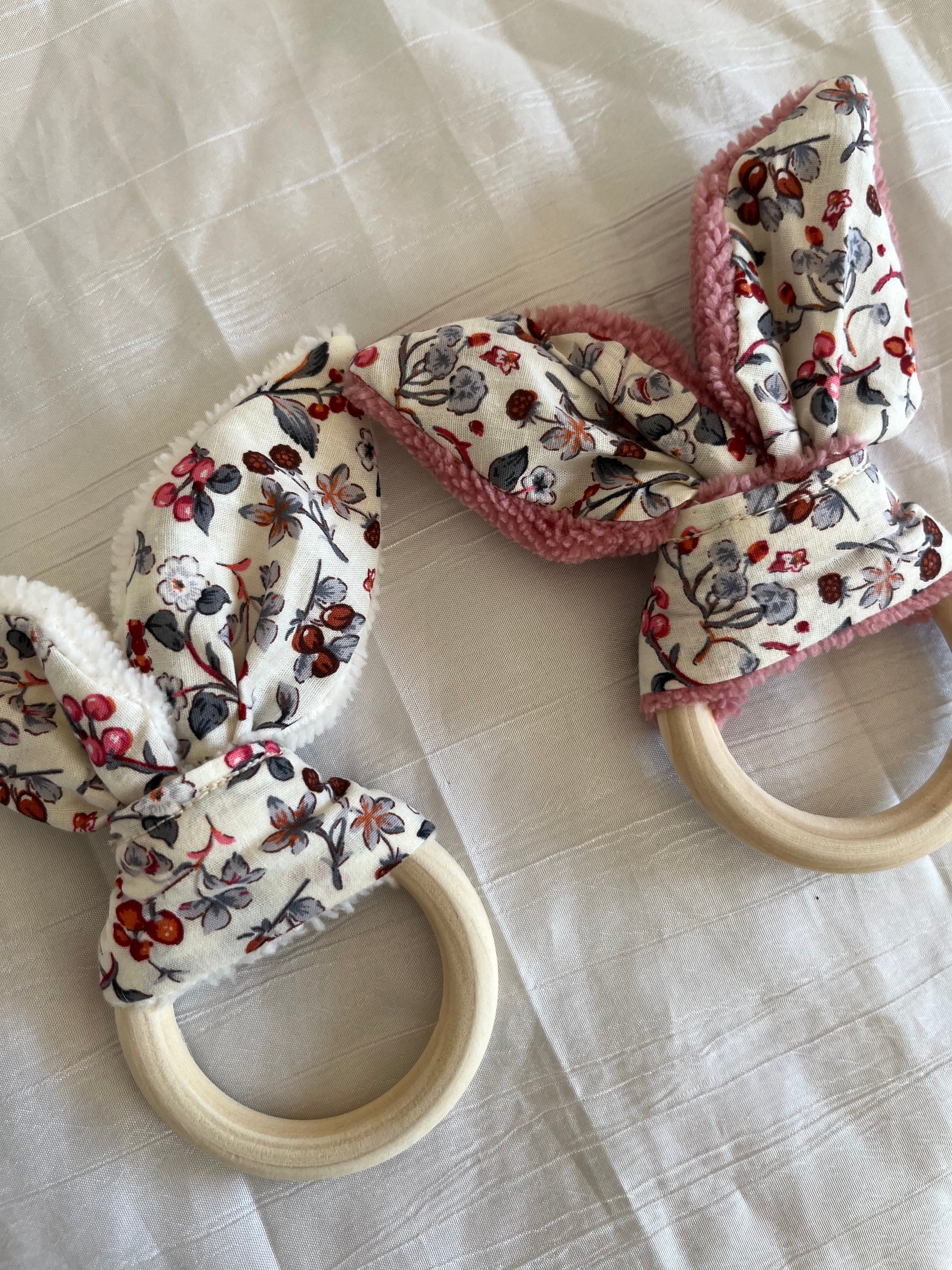 Anneau/hochet de dentition avec grelot 🎶 fait à la main et avec amour en coton et bambou ✨
