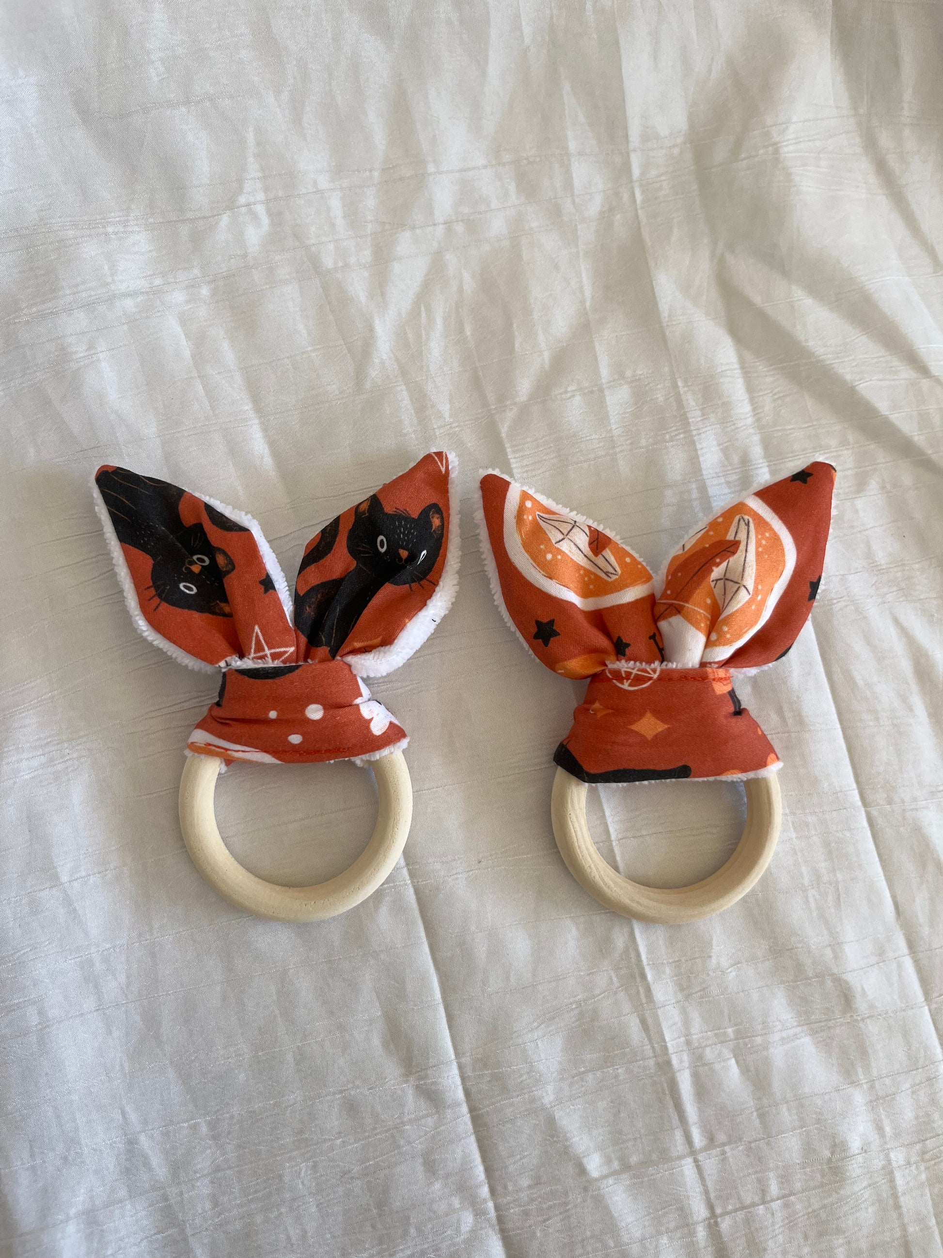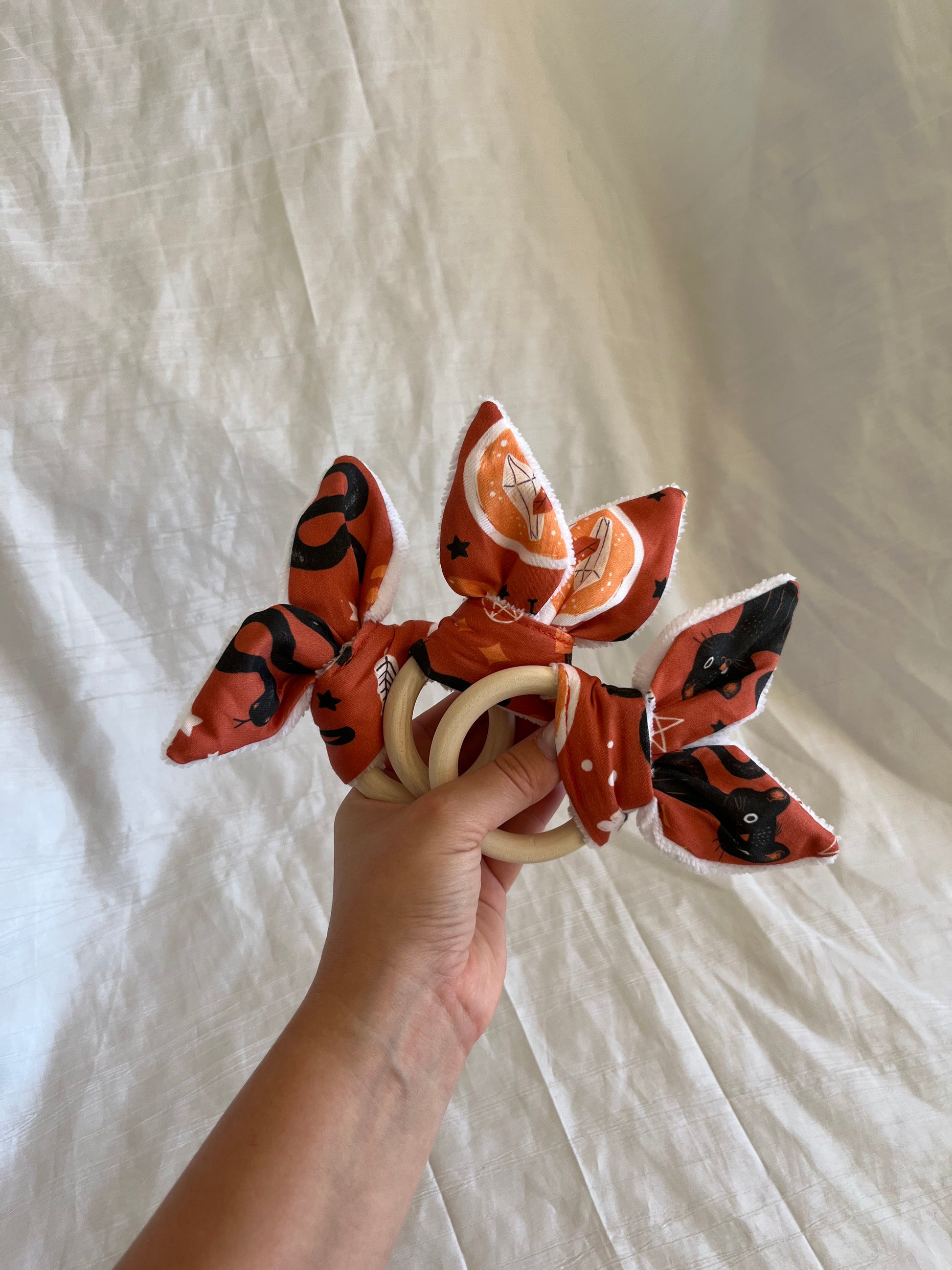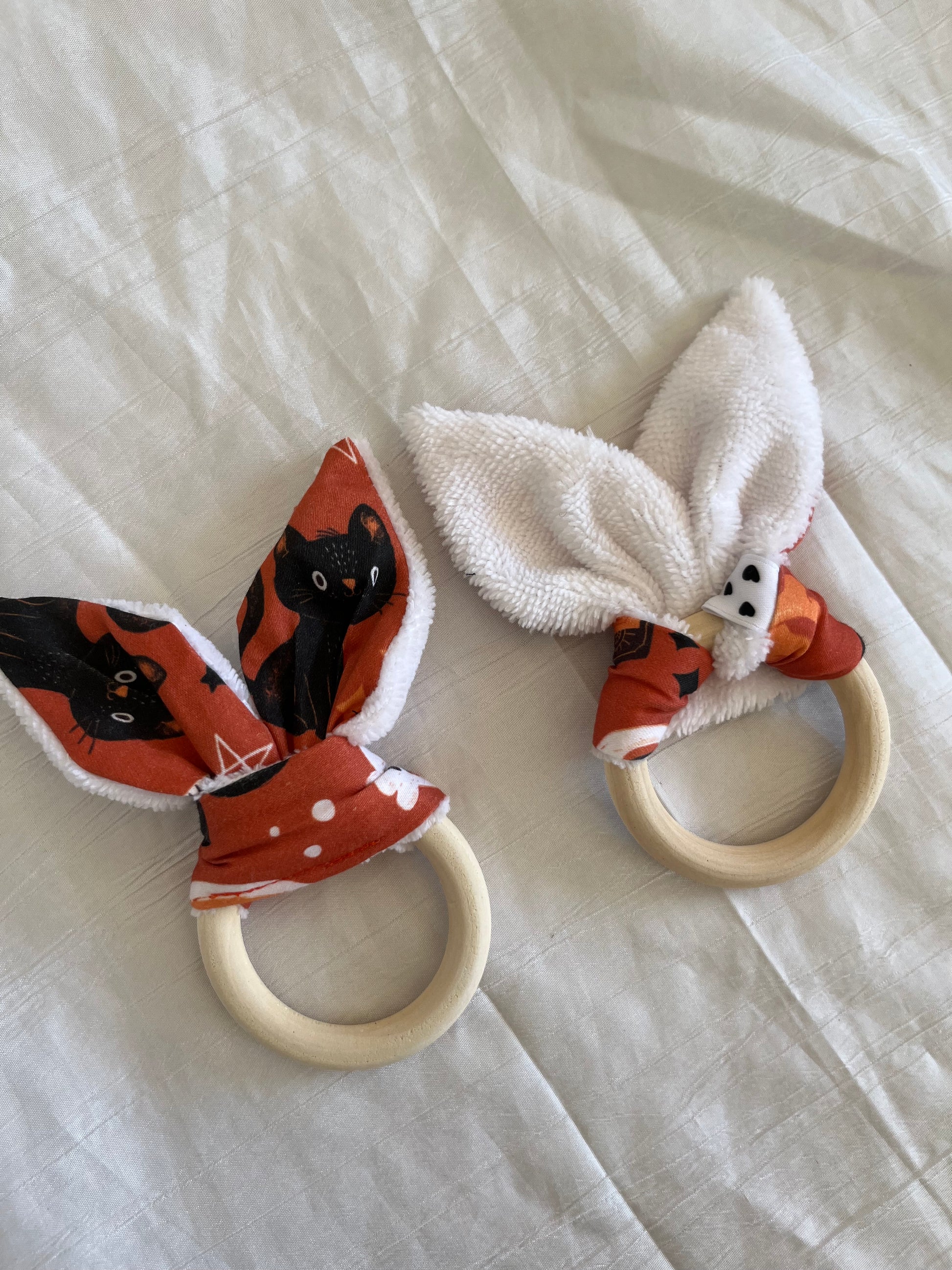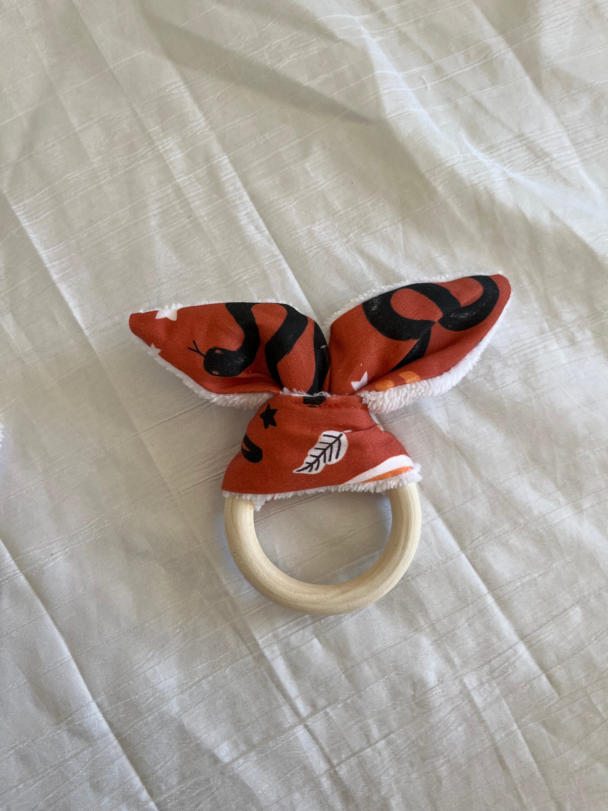 Anneau/hochet de dentition avec grelot 🎶 fait à la main et avec amour en gaze de coton et bambou ✨