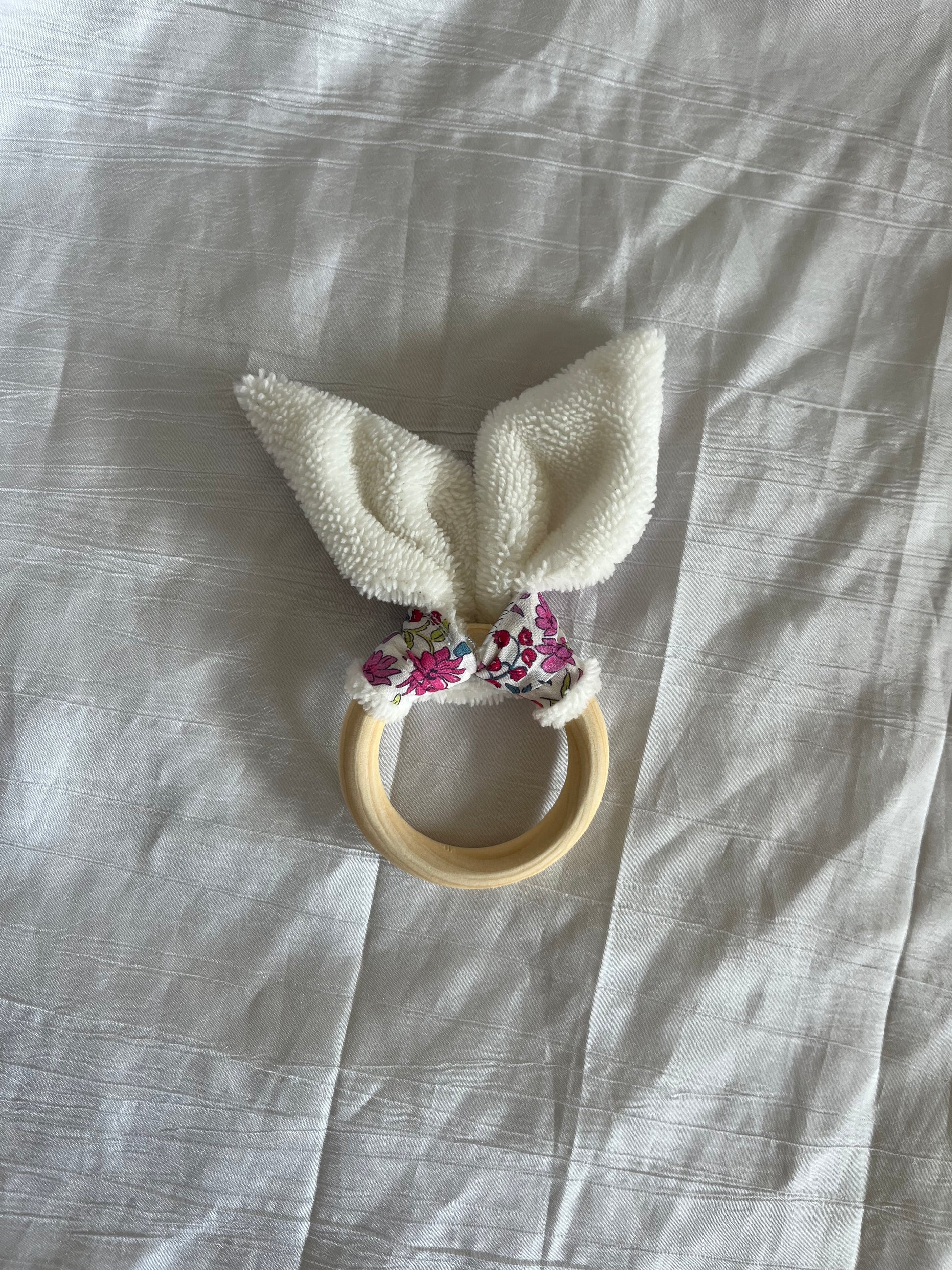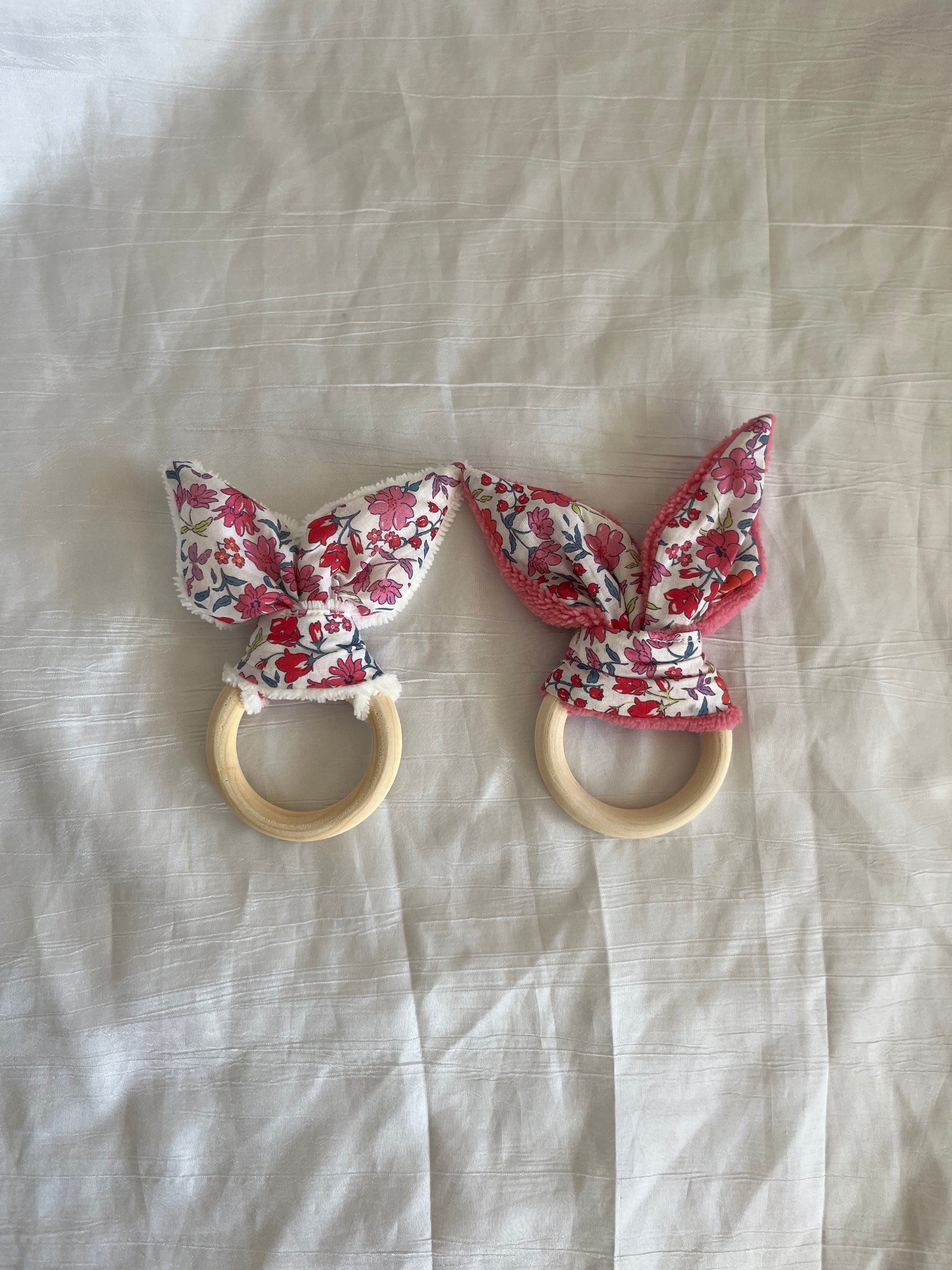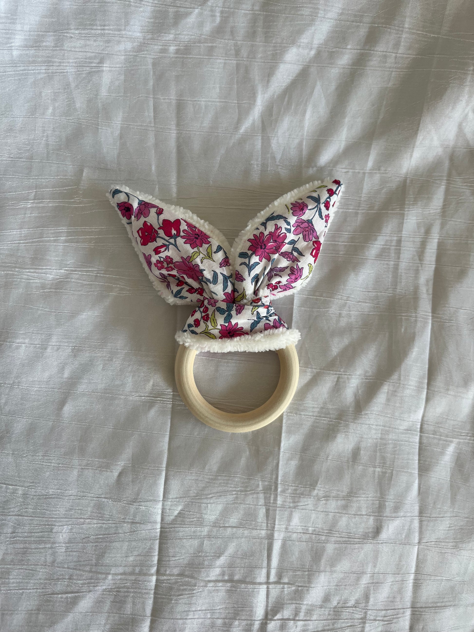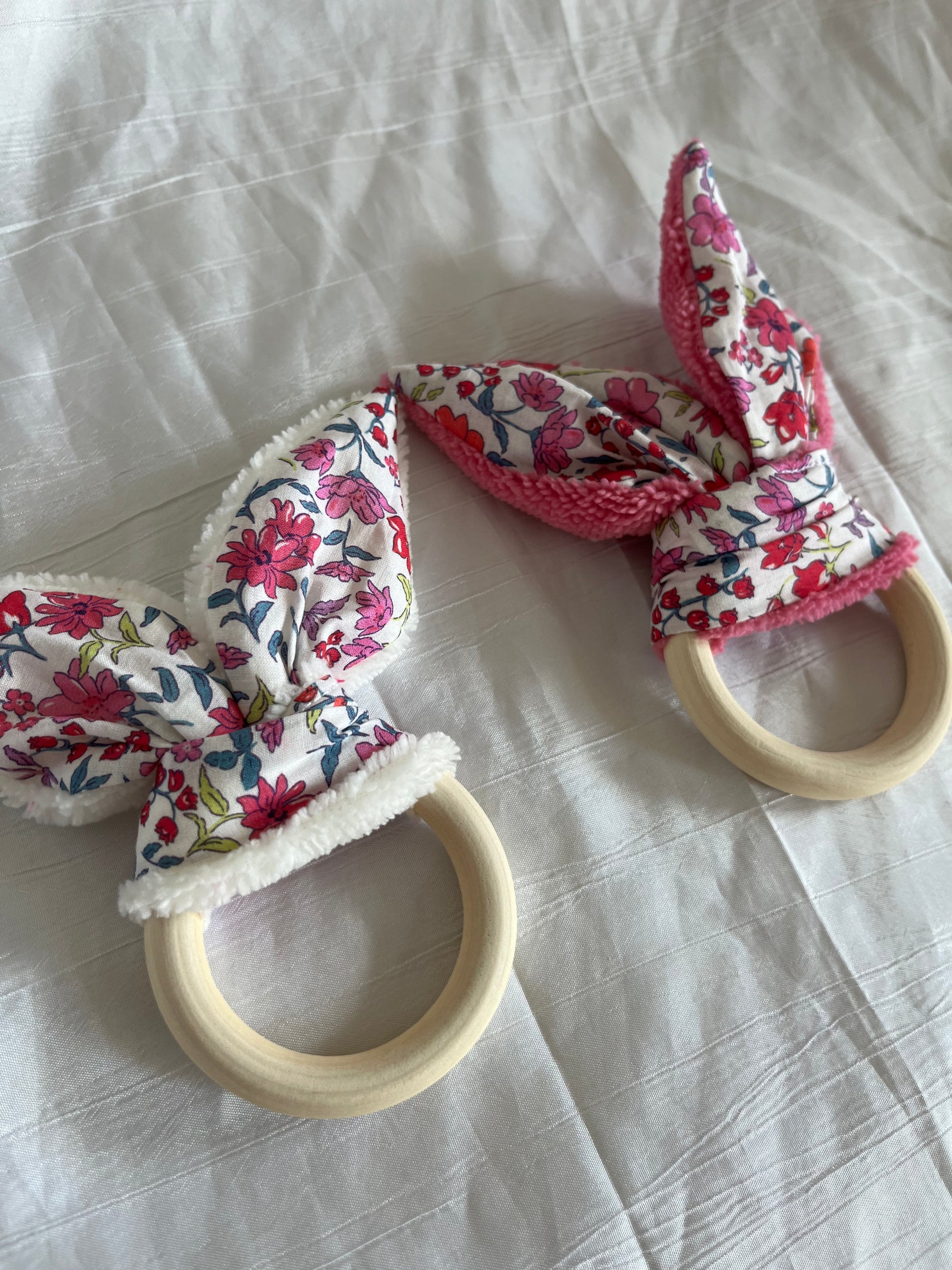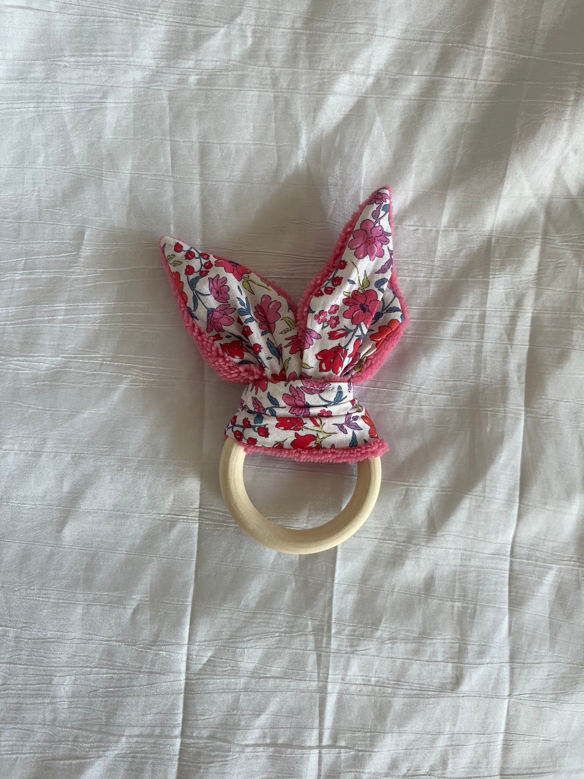 Anneau/hochet de dentition avec grelot 🎶 fait à la main et avec amour en coton liberty et bambou ✨