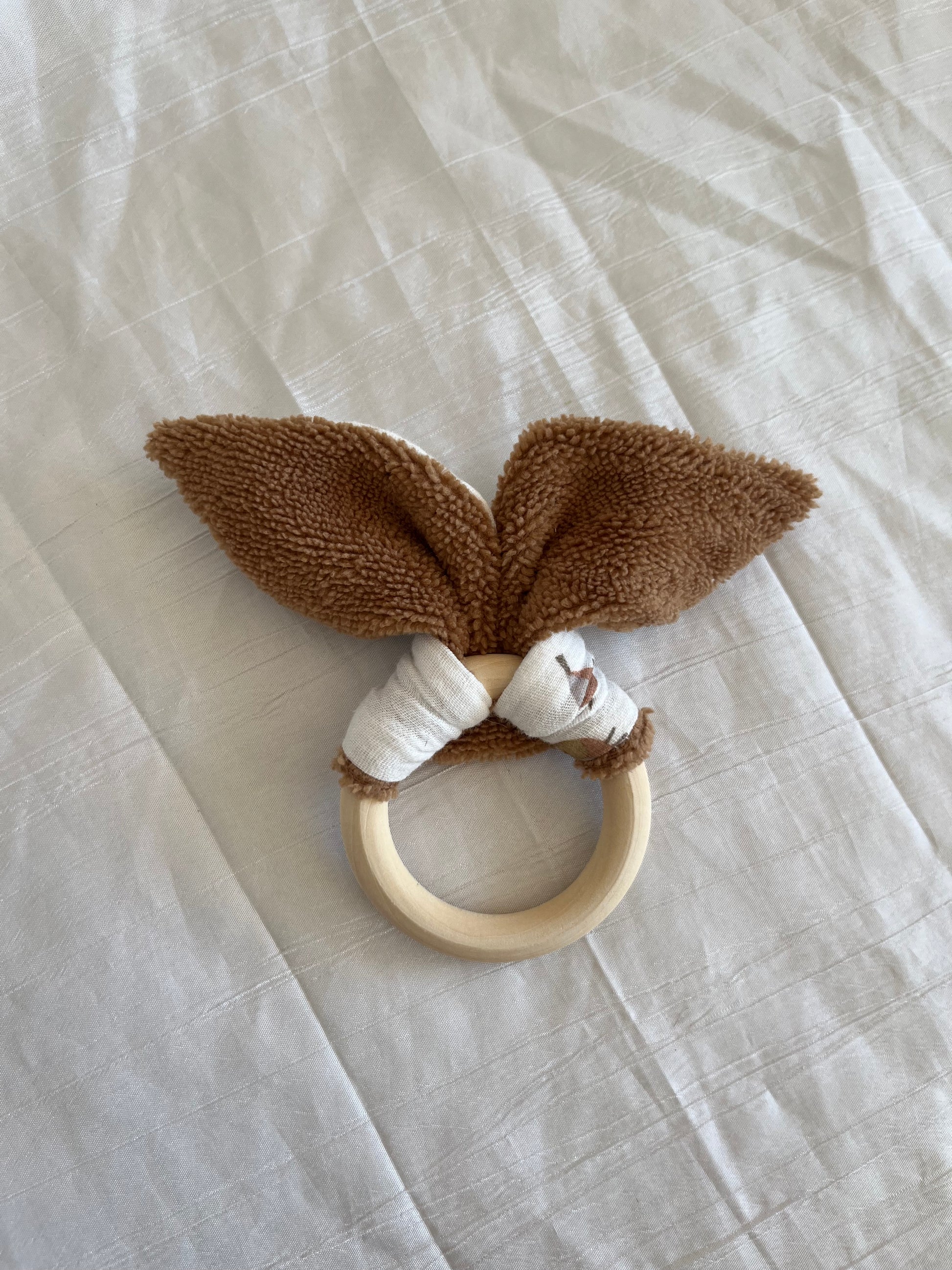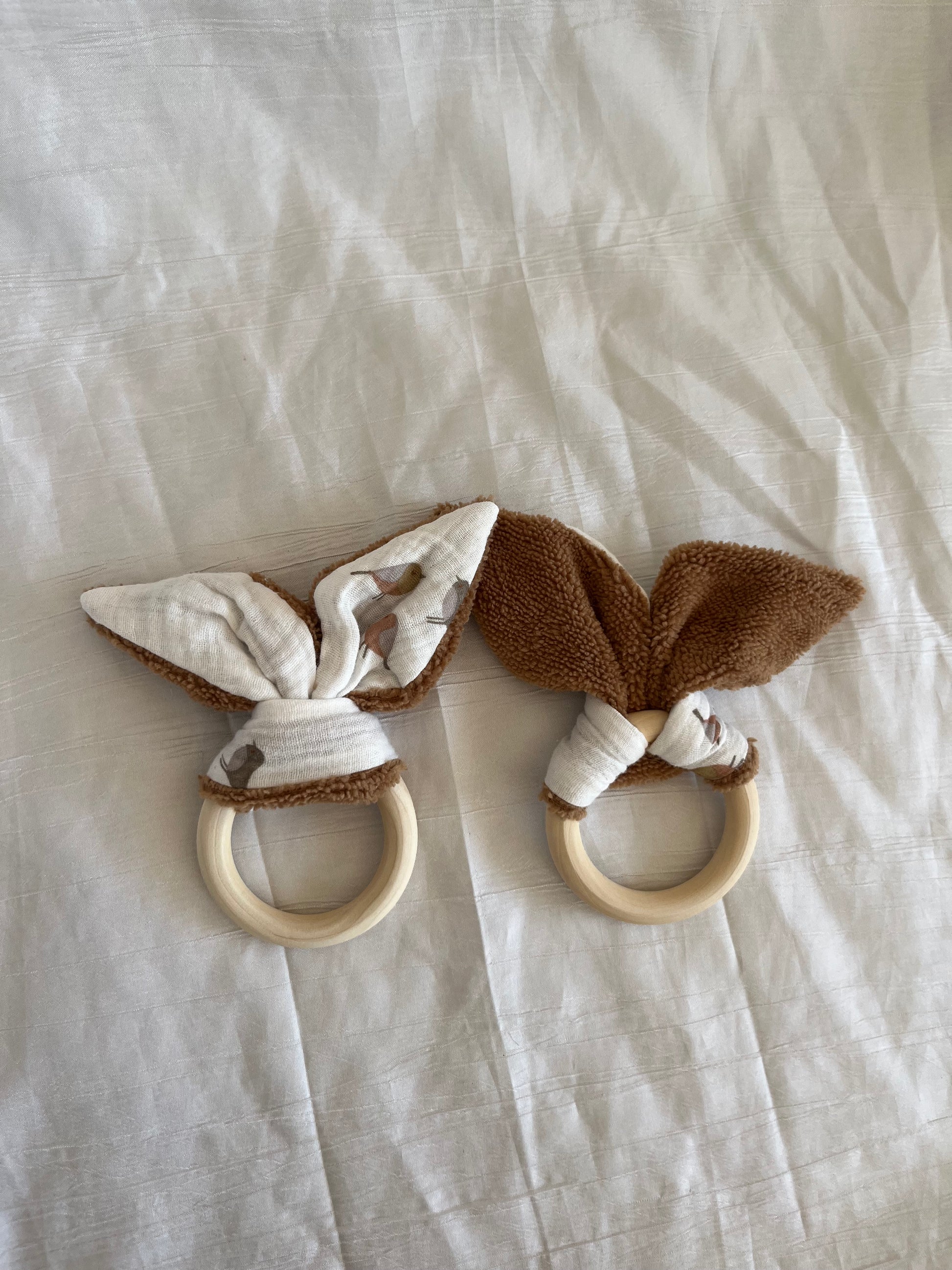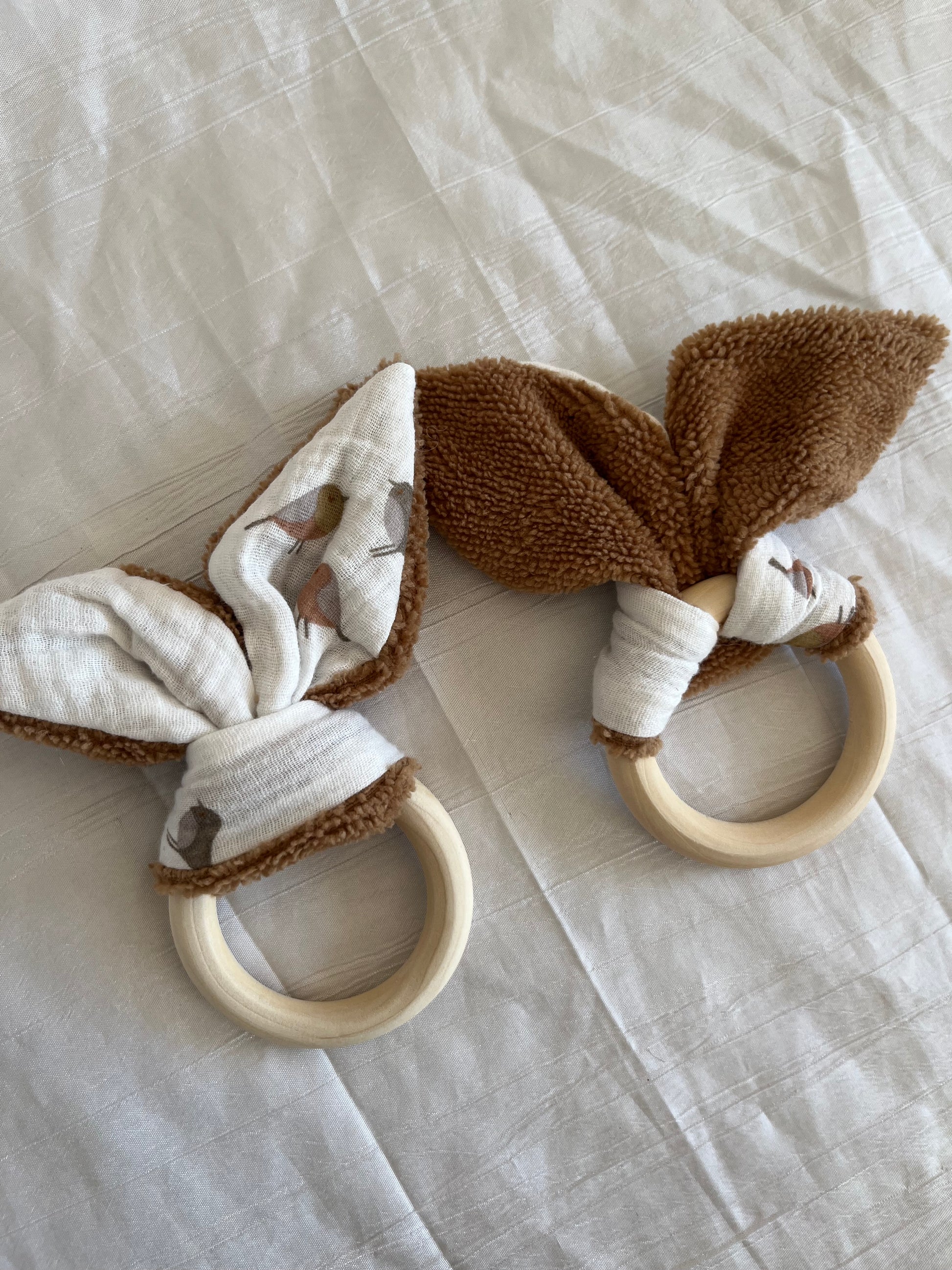 Anneau/hochet de dentition avec grelot 🎶 fait à la main et avec amour en gaze de coton et bambou ✨
