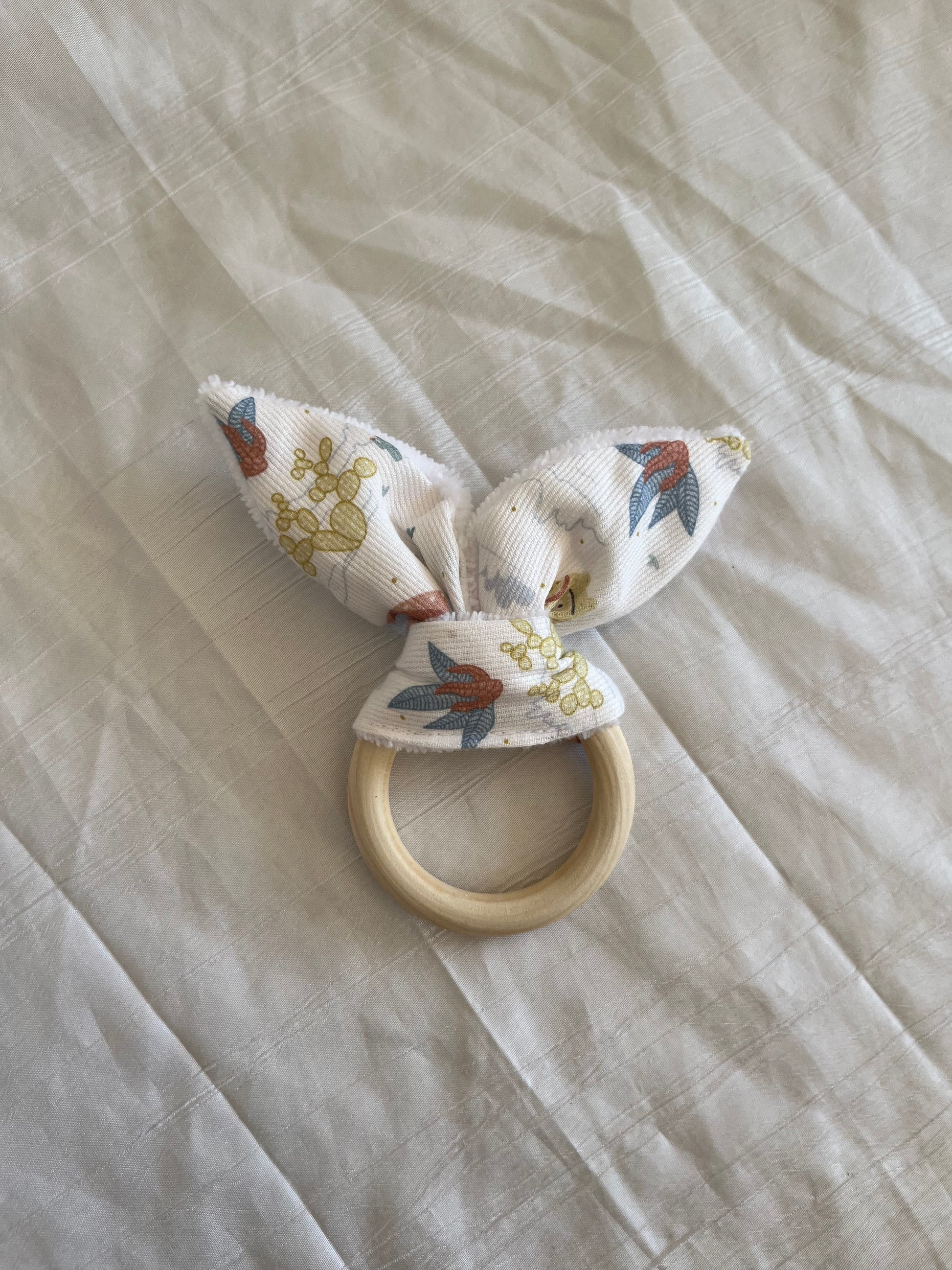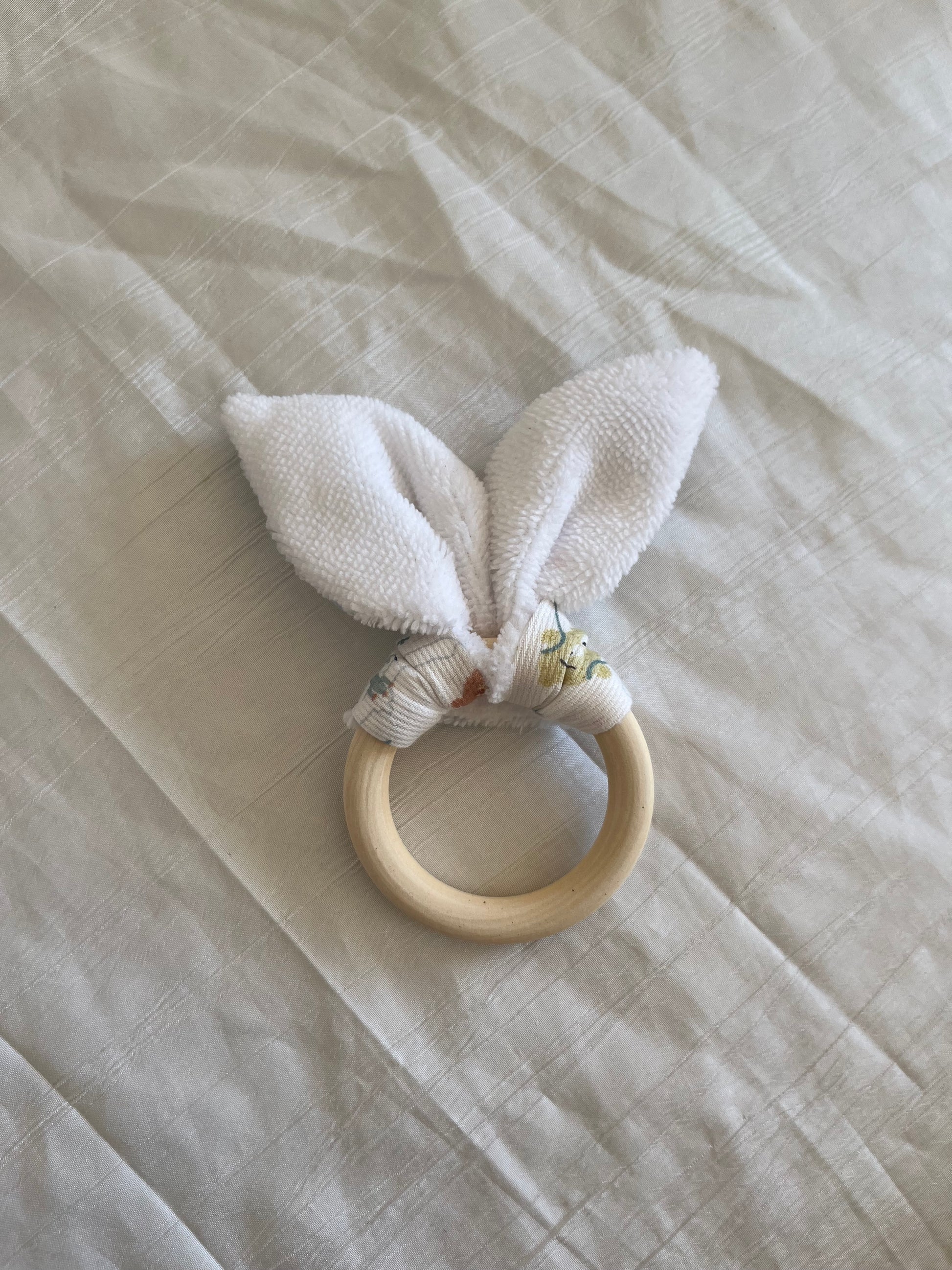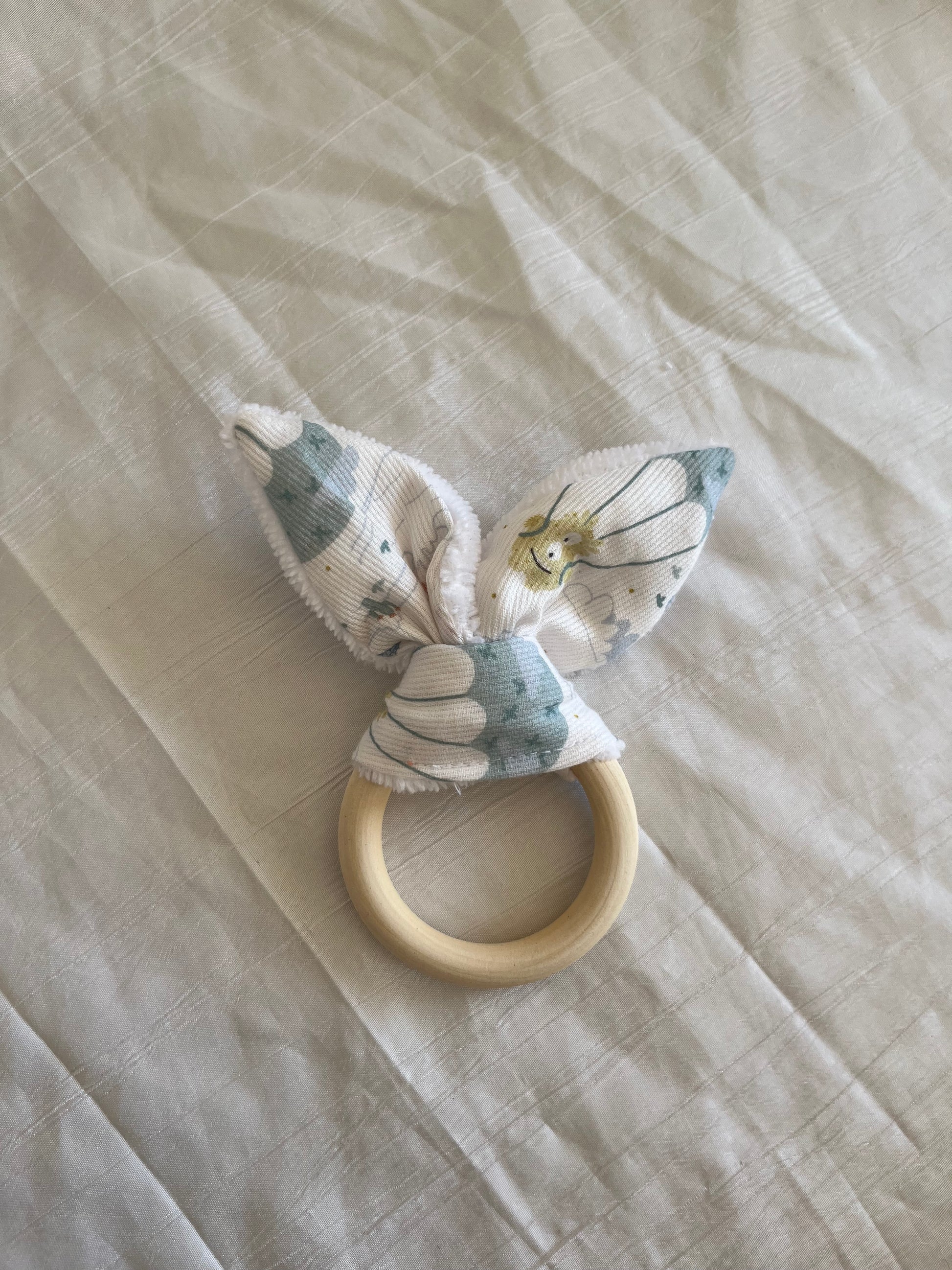 Anneau/hochet de dentition avec grelot 🎶 fait à la main et avec amour en gaze de coton et bambou ✨