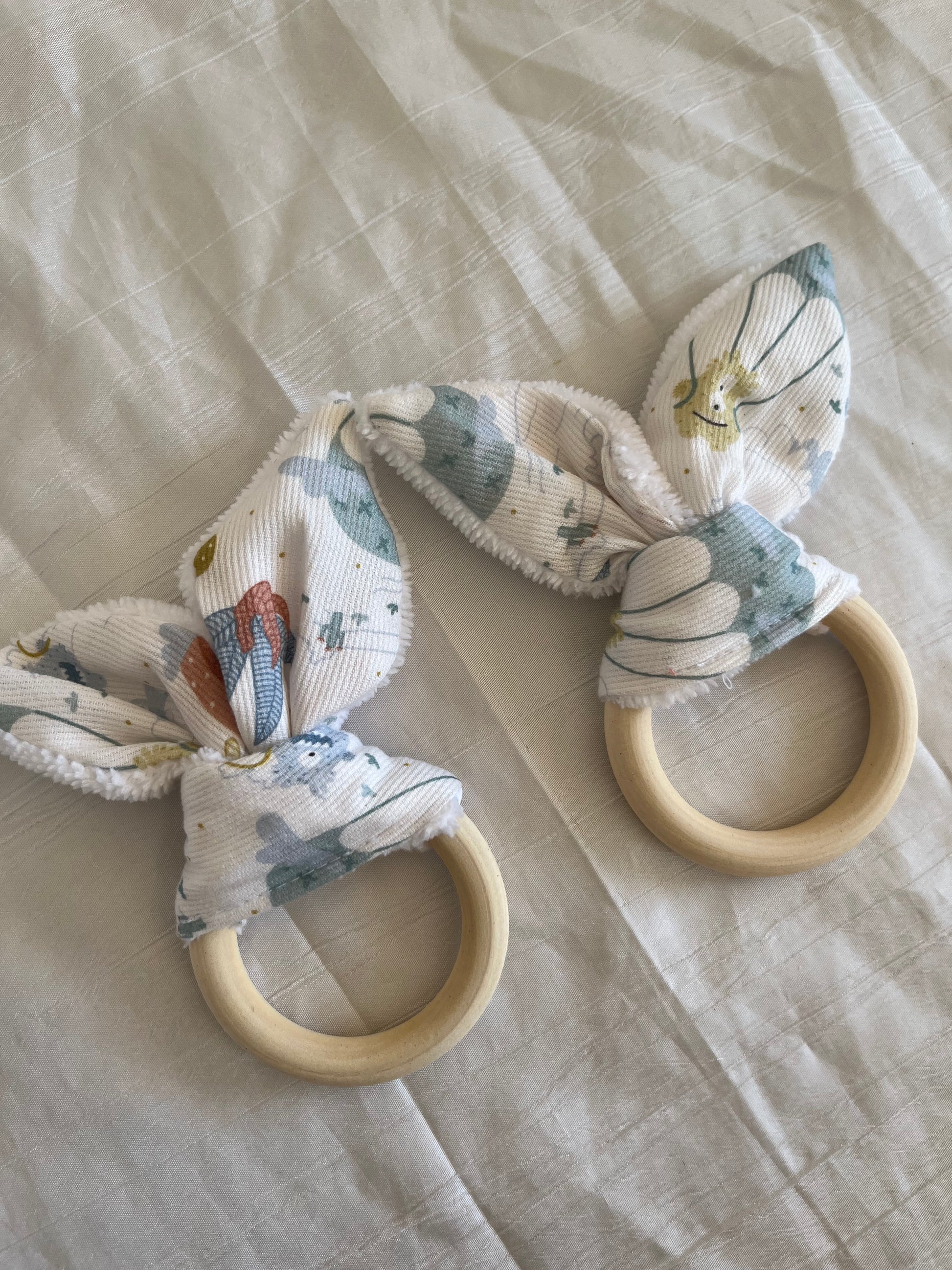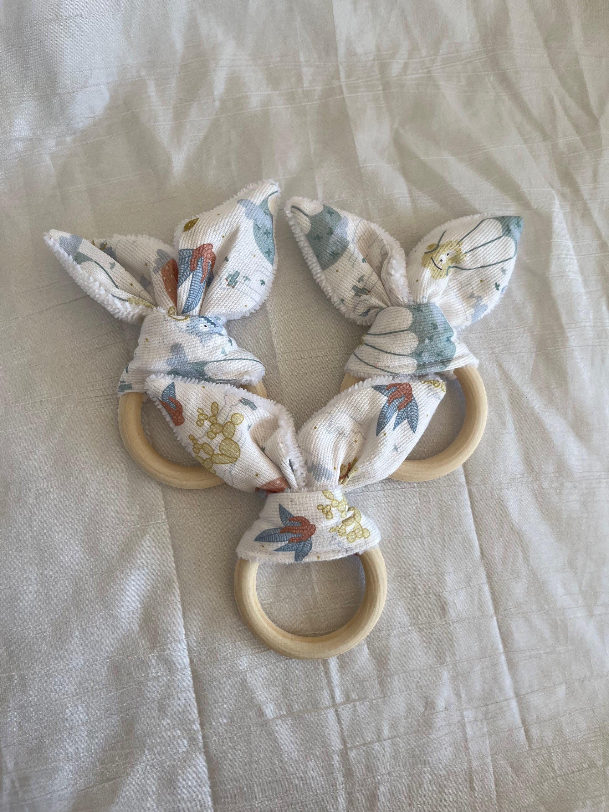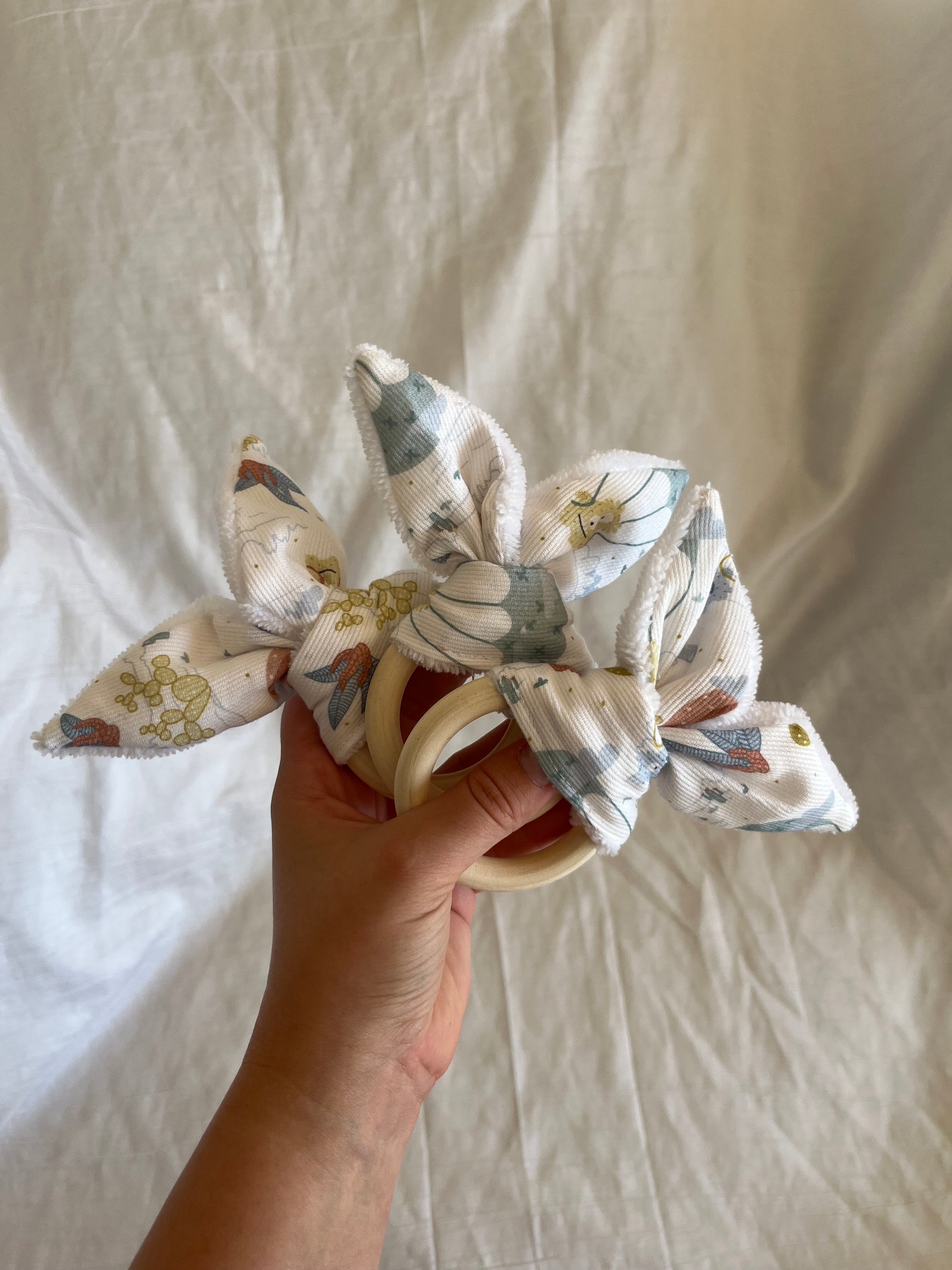 Anneau/hochet de dentition avec grelot 🎶 fait à la main et avec amour en gaze de coton et bambou ✨